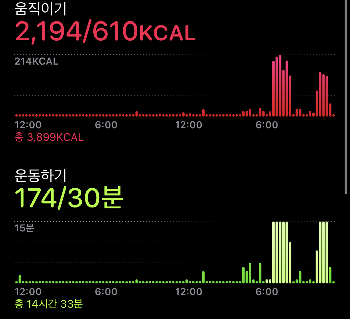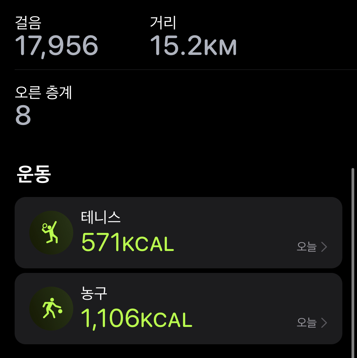 애플워치로 오늘 운동한거 다 기록해봤는데