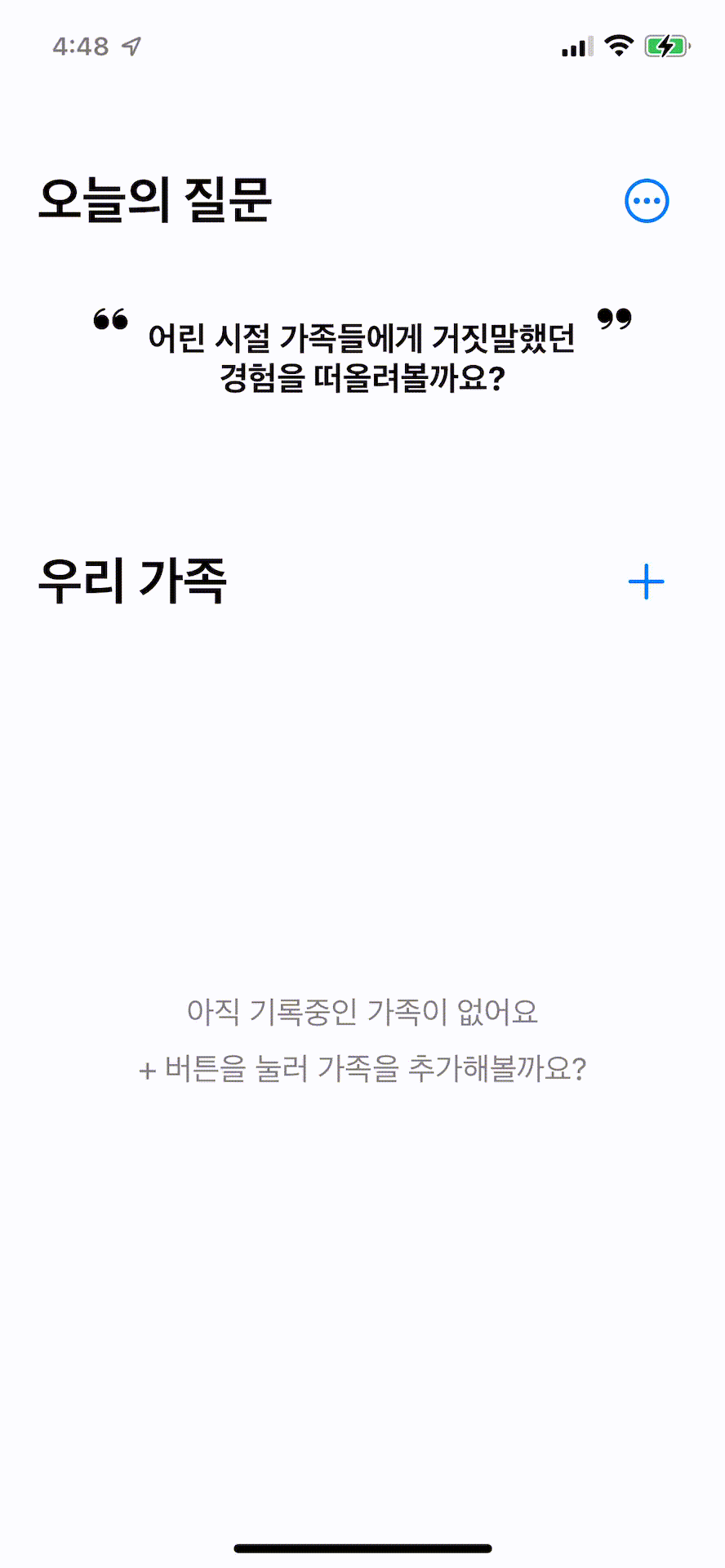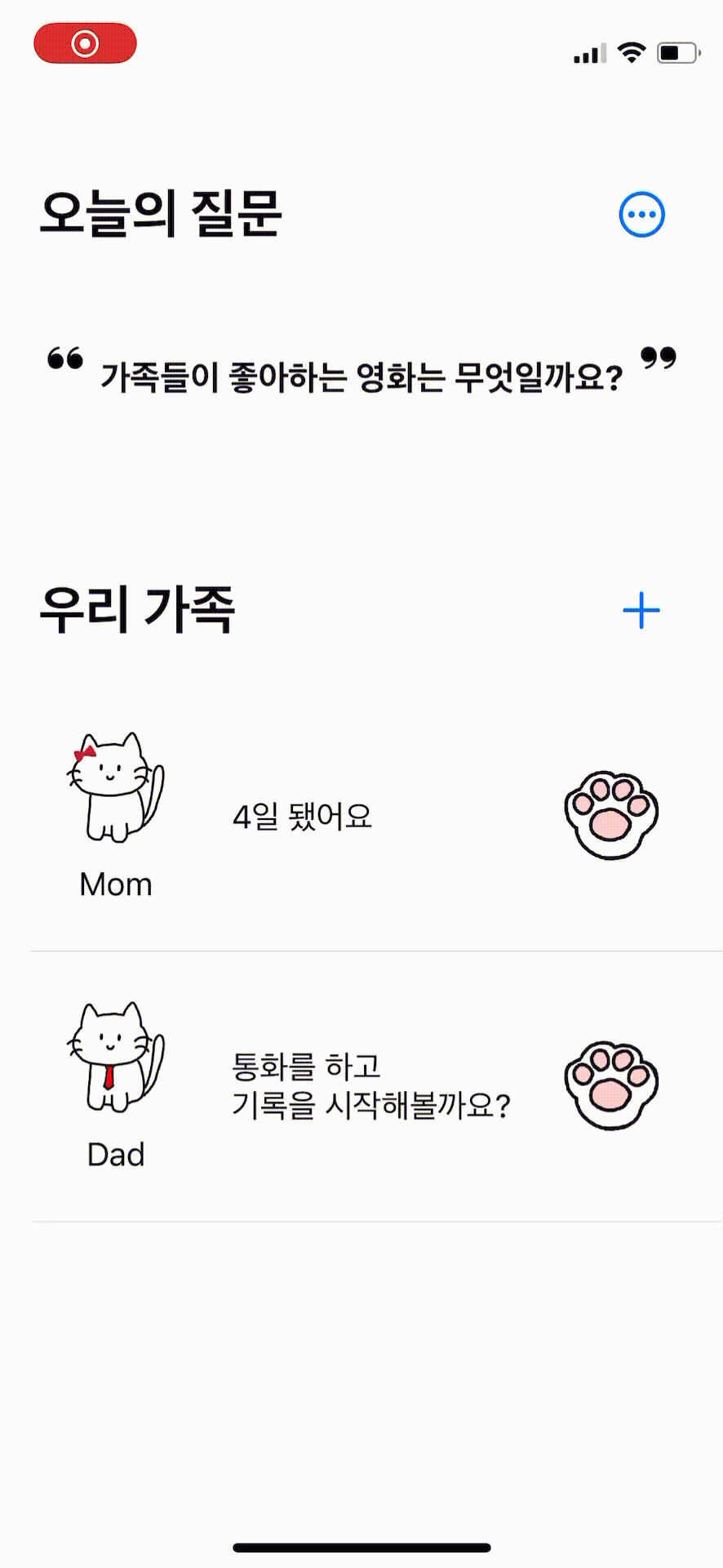 맨 상단의 오늘의 질문 은 가족간의 대화할만한 주제를 던져준다!