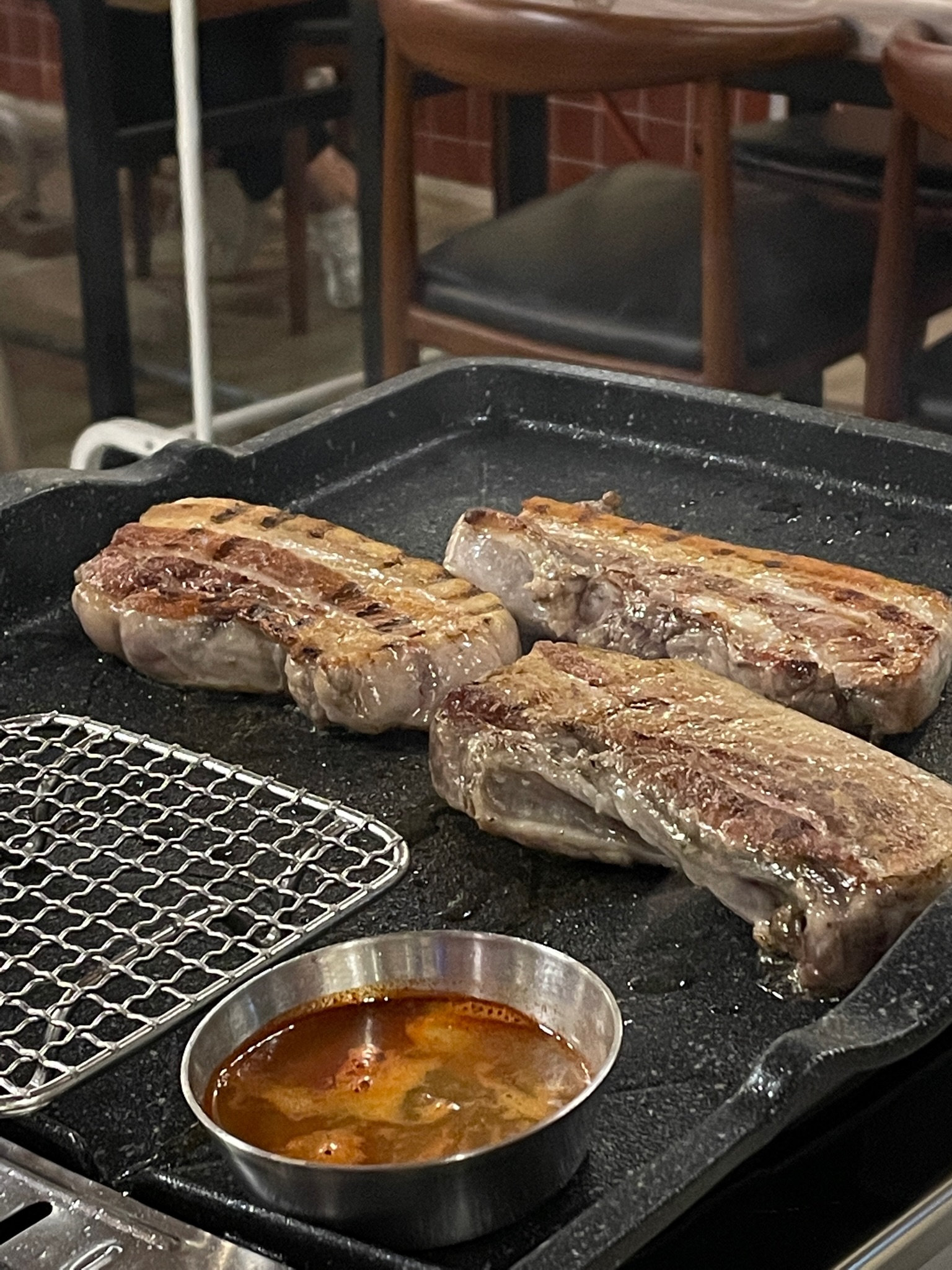포항에 돼지빠라는 곳에서 삼겹살에 소주 사악 했는데