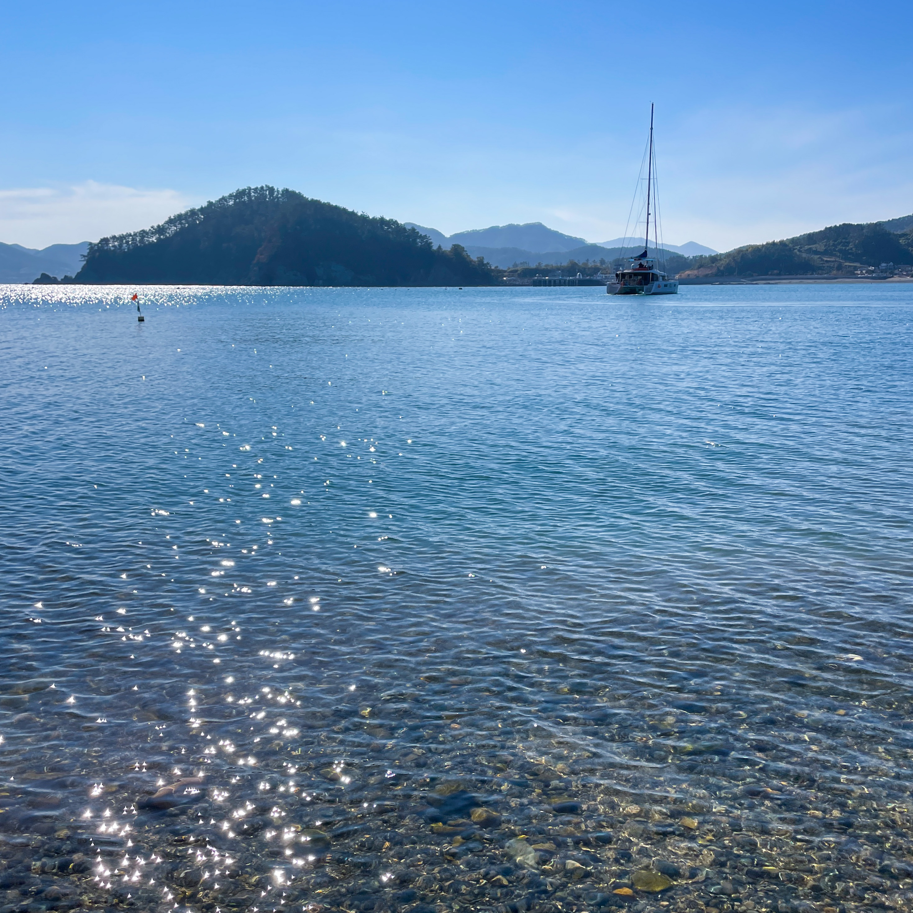 출항하기 전에는 햇빛 쨍쨍 구름 없음 맑다가