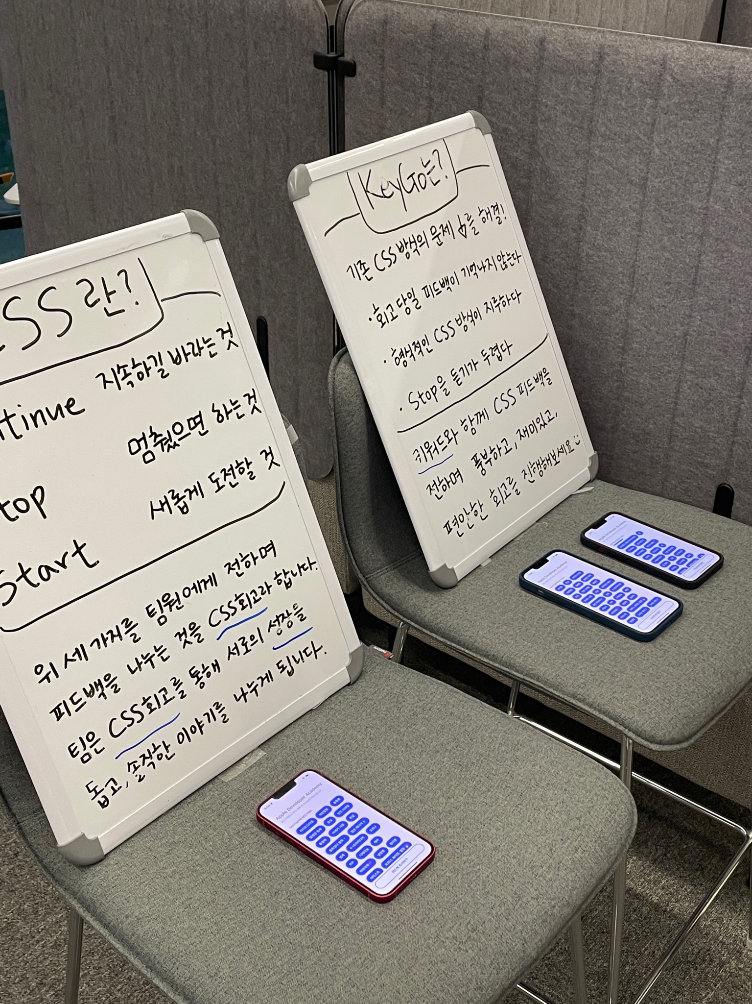 2일차 마지막 일정으로 1일차에 못한 CSS(Continue, Stop, Start) 상호 피드백을 줬다