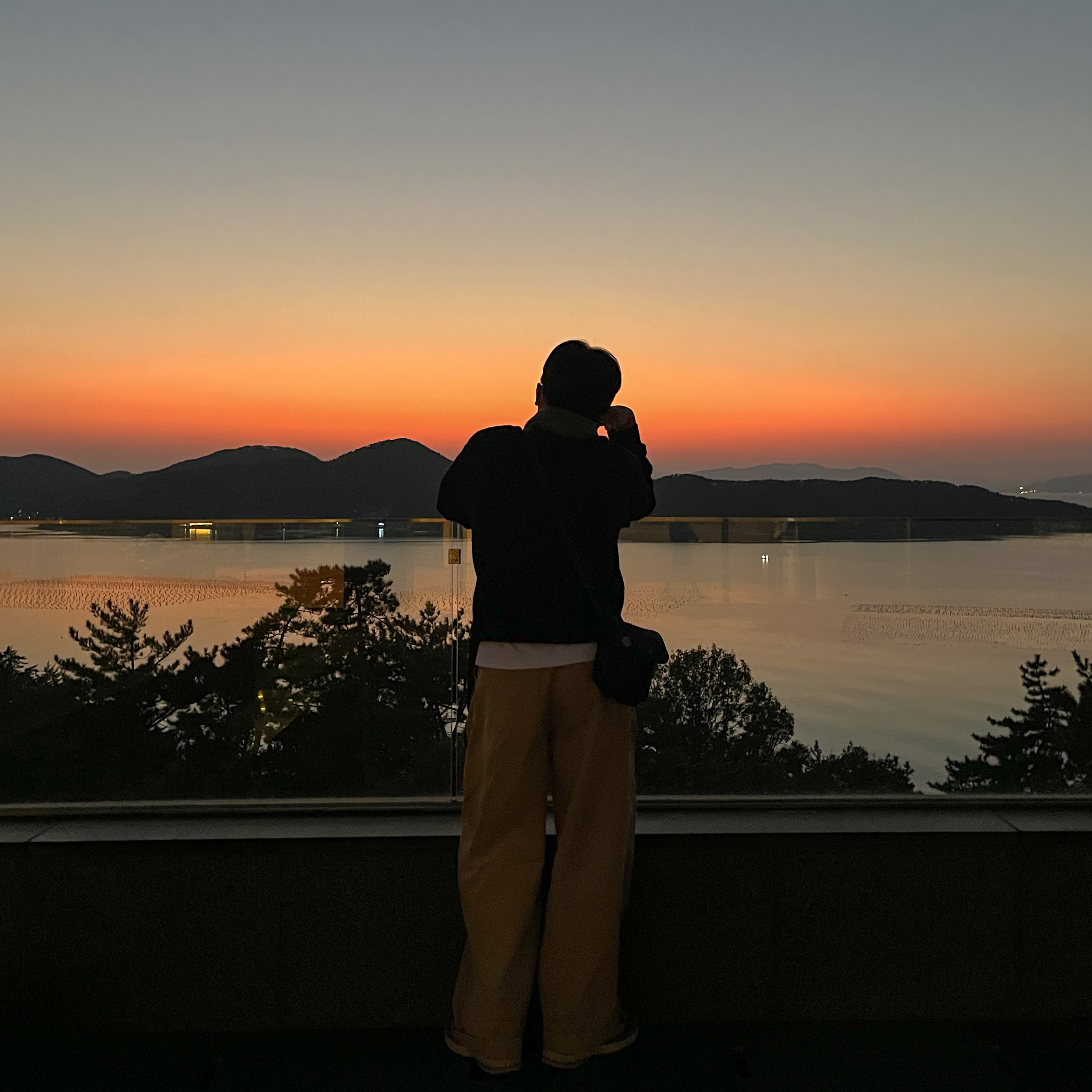 골프 클럽에서 저녁 먹고 노을 보면서 사색에 빠진 나...