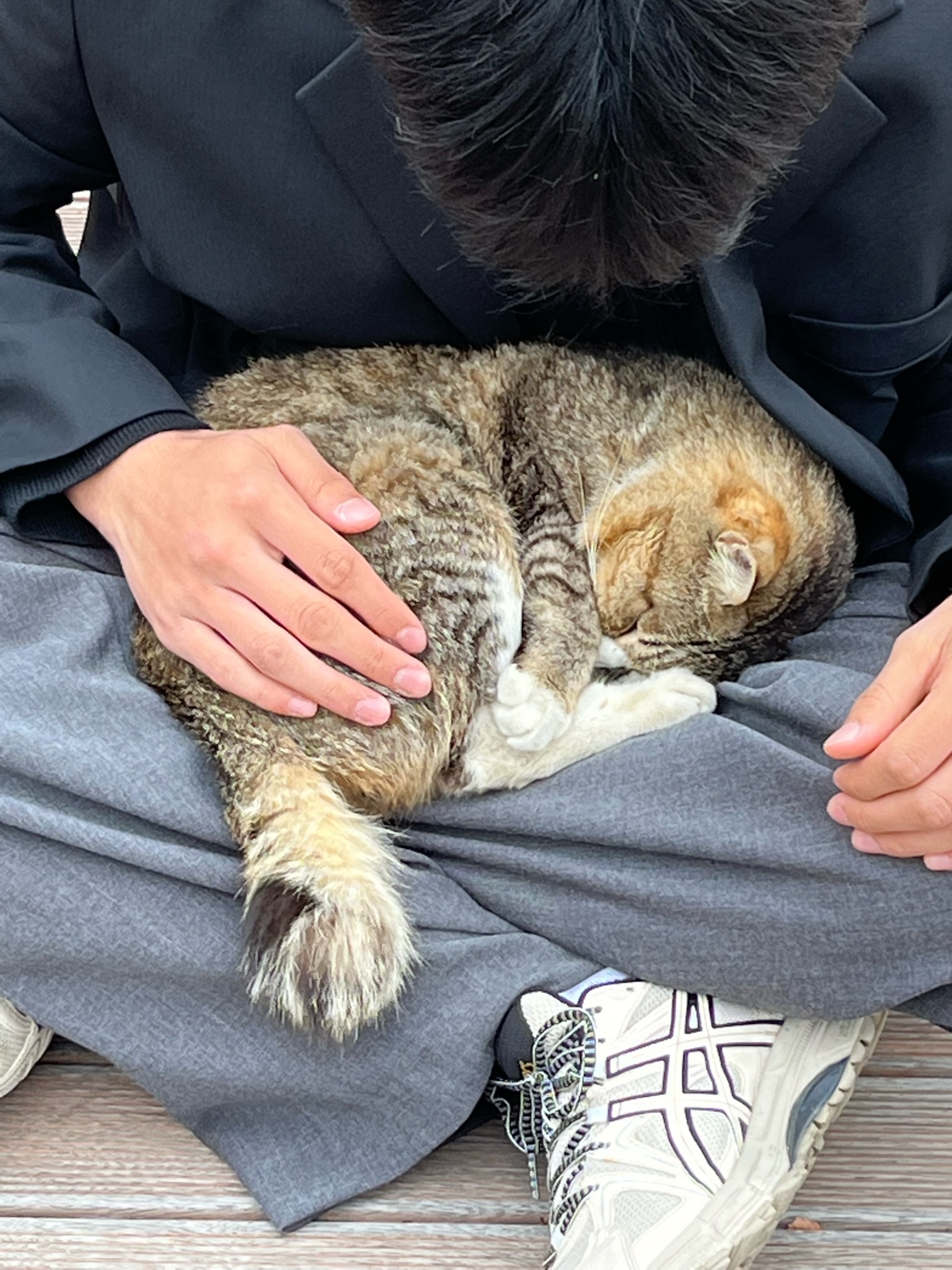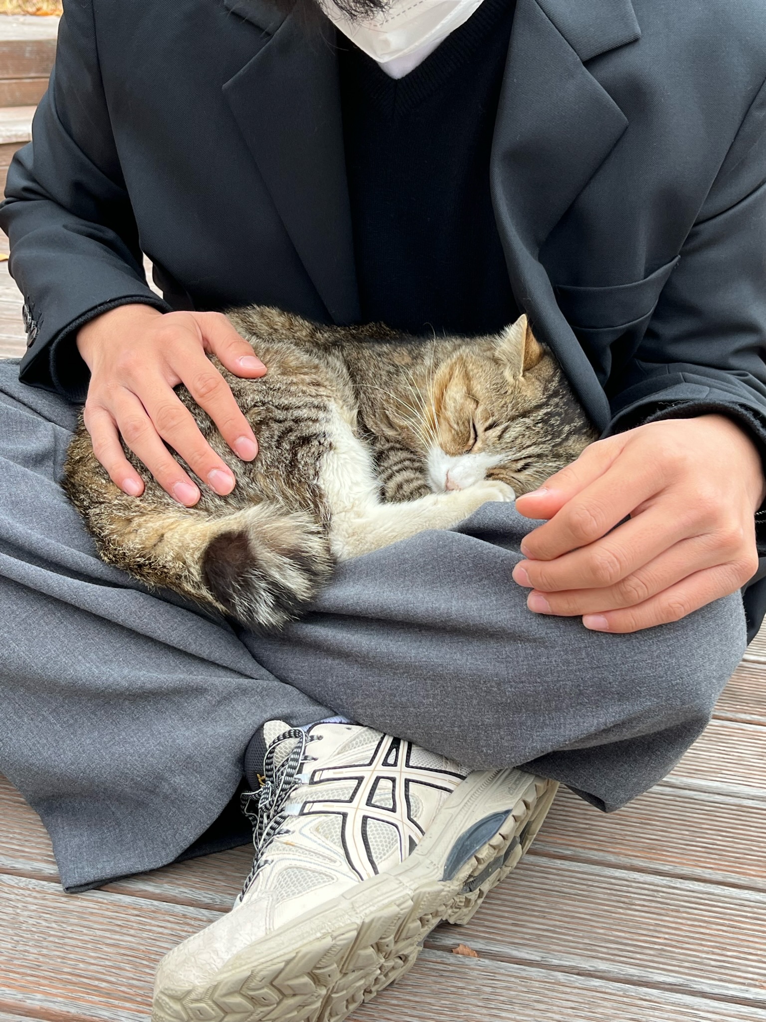 갑자기 내 무릎 위로 올라와서 한숨 자고 갔다